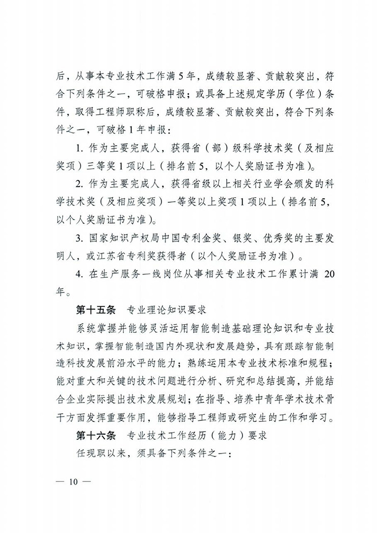 《江苏省数字经济(智能制造)工程专业技术资格条件(试行)》(苏职称〔2022〕15号)